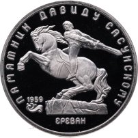 5 рублей 1991 Proof "Памятник Давиду Сасунскому в Ереване" в банковской запайке