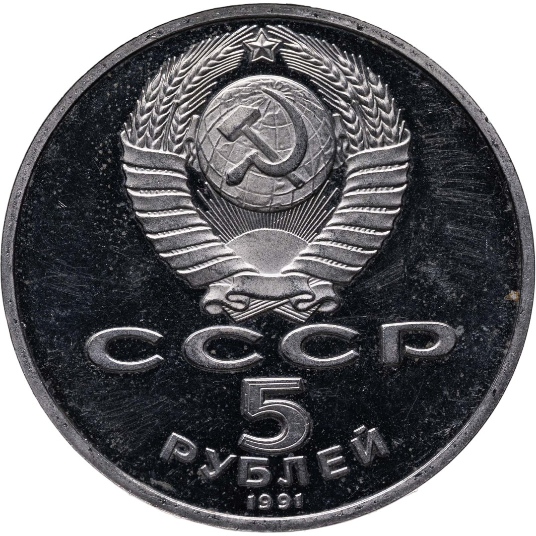 5 рублей 1991 Proof "Здание Государственного банка в Москве"