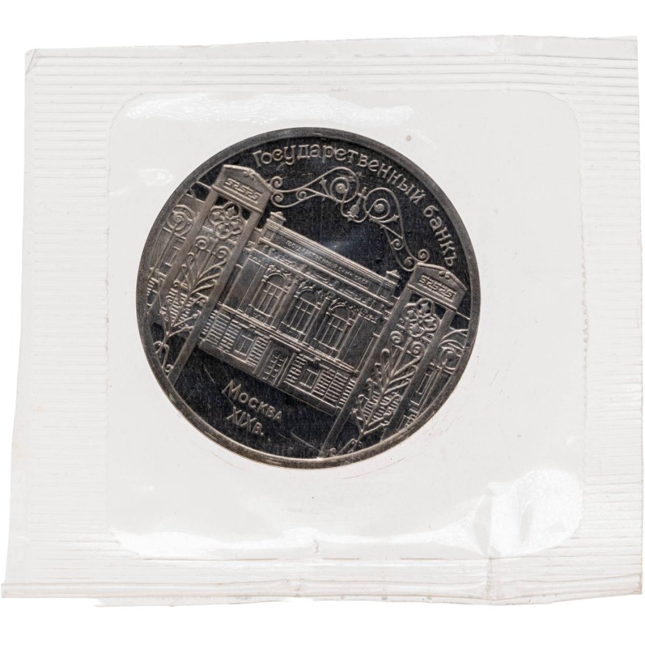 5 рублей 1991 Proof "Здание Государственного банка в Москве" в банковской запайке