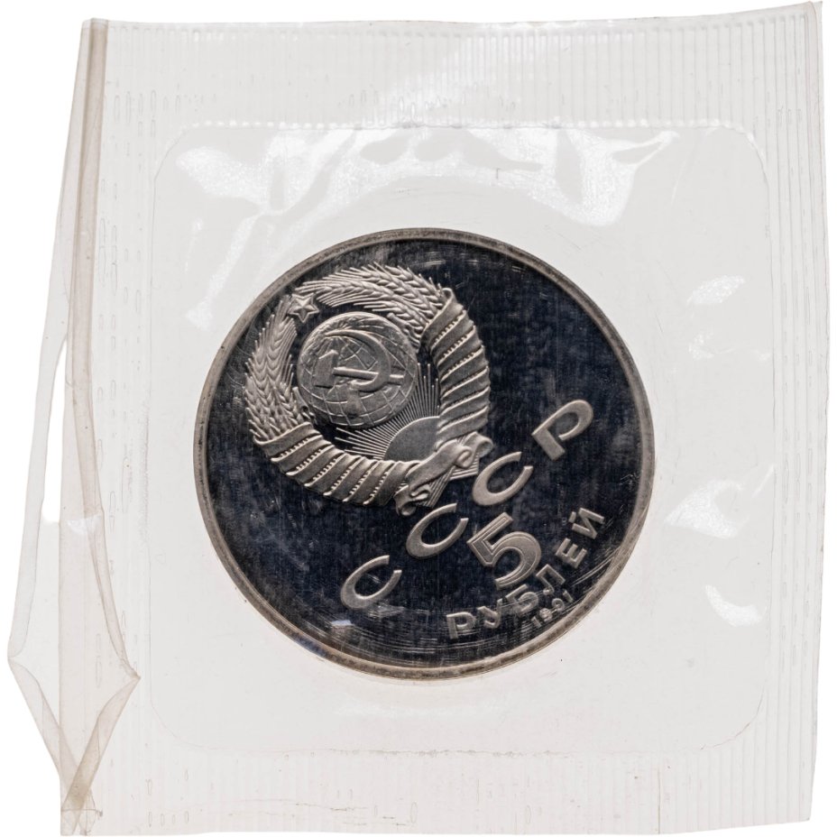5 рублей 1991 Proof "Здание Государственного банка в Москве" в банковской запайке
