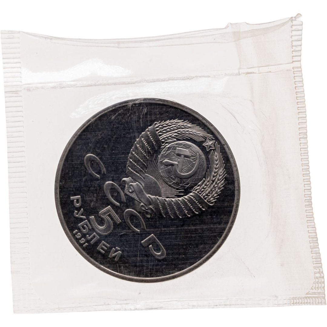 5 рублей 1991 Proof "Здание Государственного банка в Москве" в банковской запайке