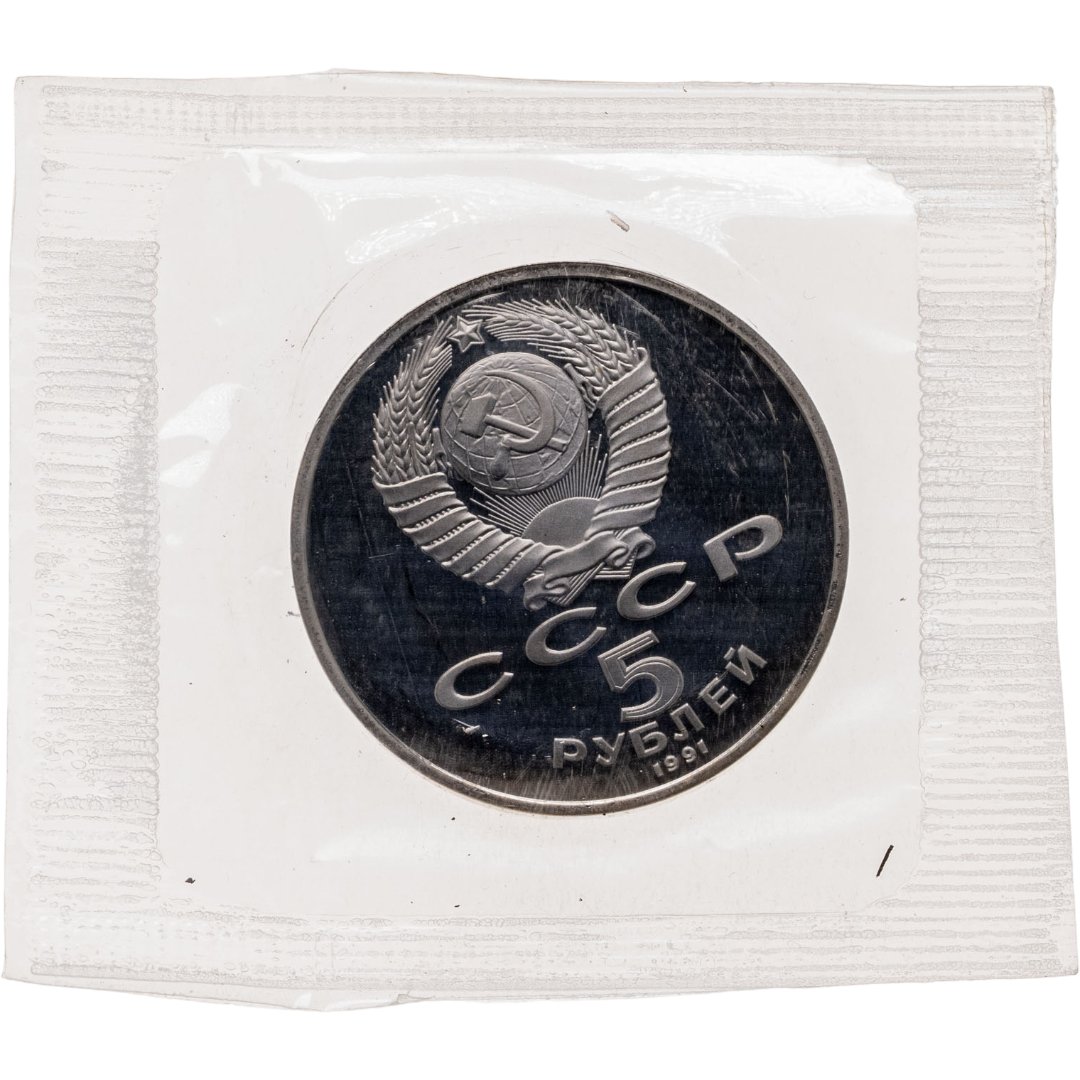 5 рублей 1991 Proof "Здание Государственного банка в Москве" в банковской запайке