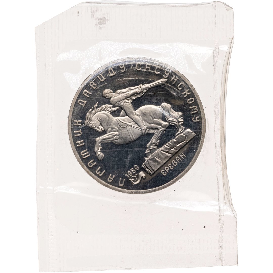 5 рублей 1991 Proof "Памятник Давиду Сасунскому в Ереване"