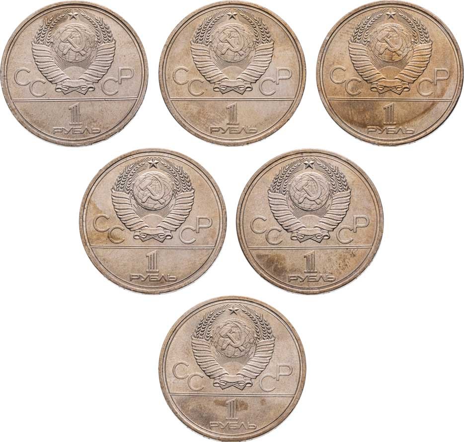 Набор из 6 монет 1 рубль 1977-1980 "Олимпиада-80" , "XXII Летние Олимпийский игры, Москва-1980"