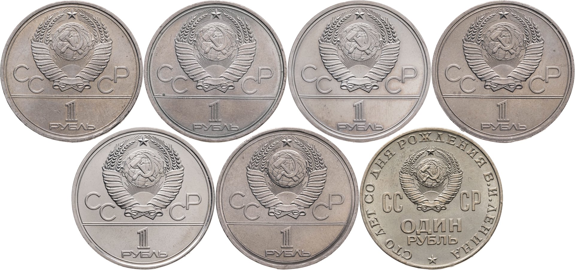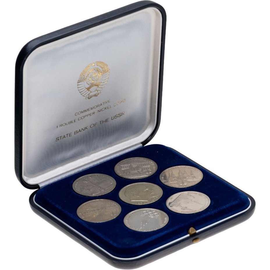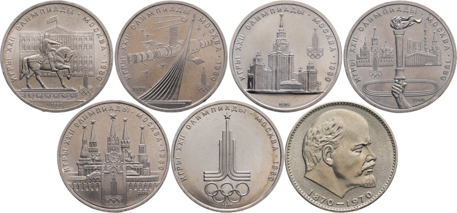 Набор монет из 7 монет СССР Олимпиада - 80 + 1 рубль 1970 "100 лет со дня рождения В.И. Ленина , в футляре Государственного Банка СССР