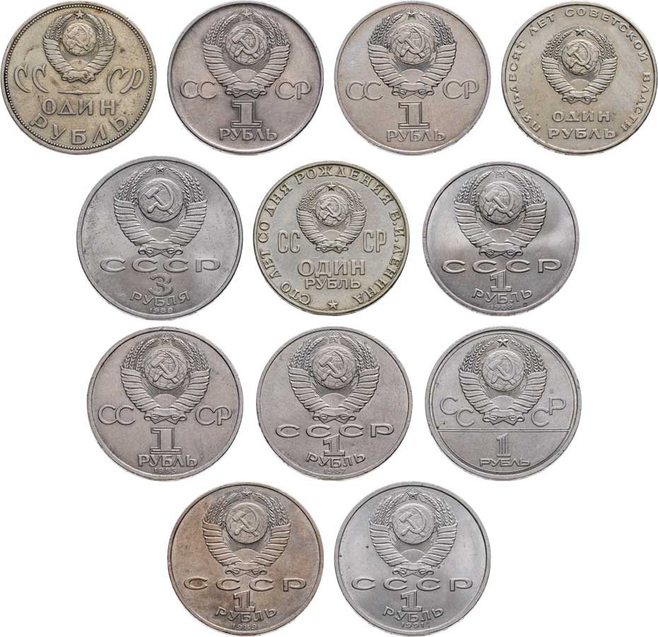 Набор из 12 юбилейных рублей СССР 1965-1991 годов
