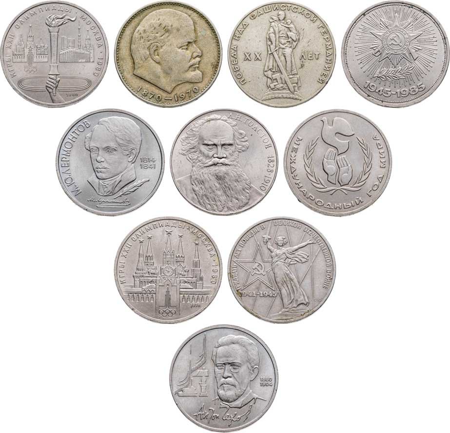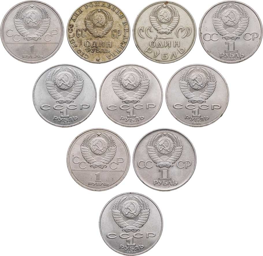 Набор из 10 юбилейных рублей СССР 1965-1991 годов