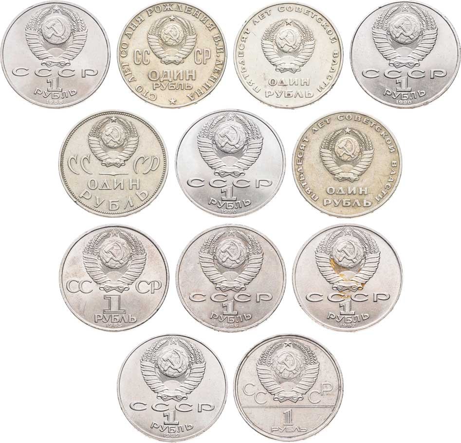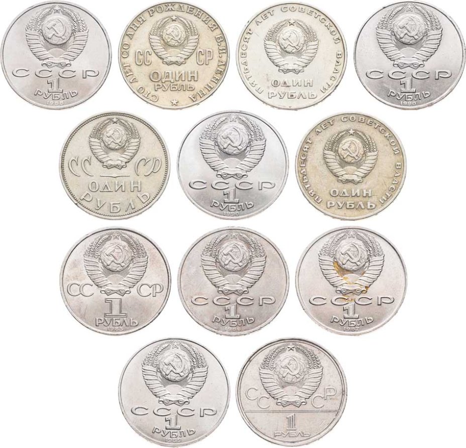 Набор из 12 юбилейных рублей СССР 1965-1991 годов