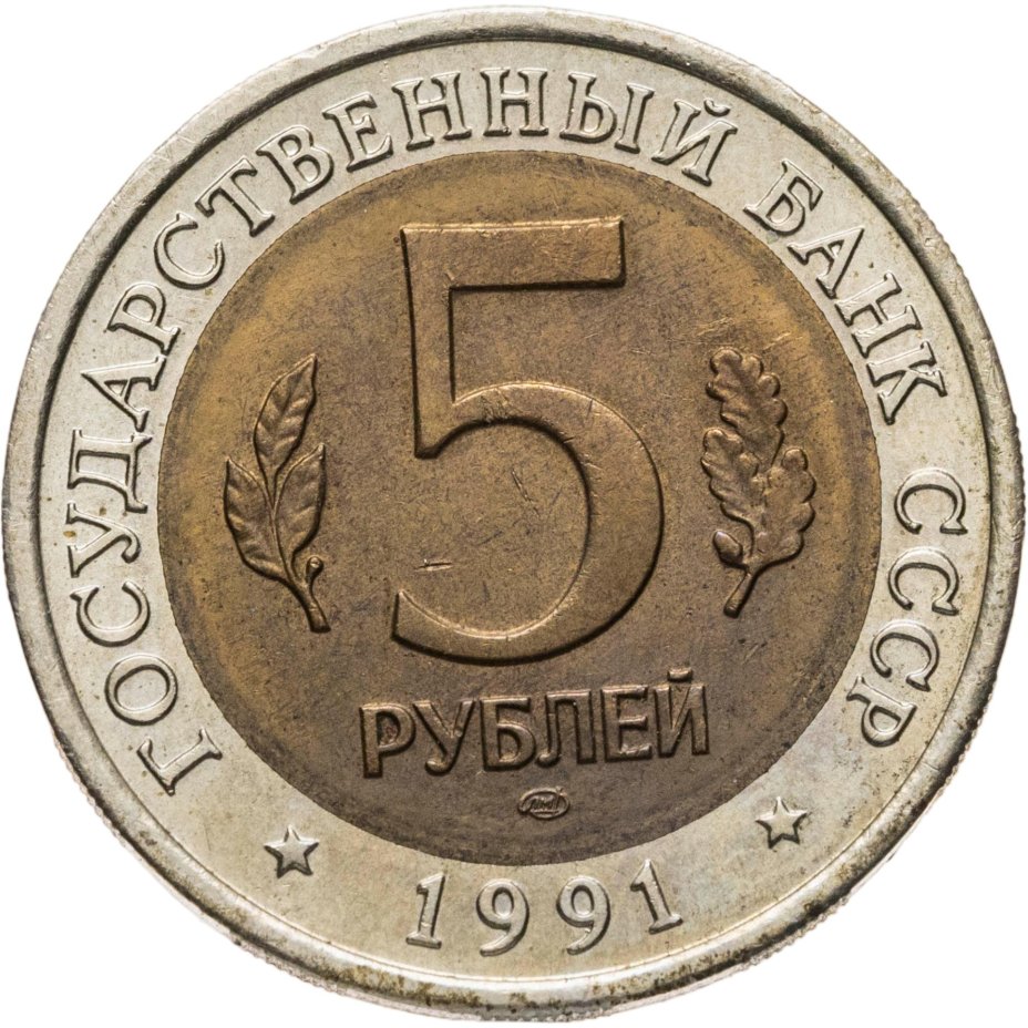 5 рублей 1991 ЛМД рыбный филин