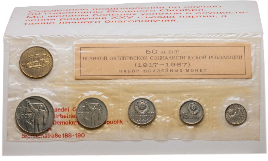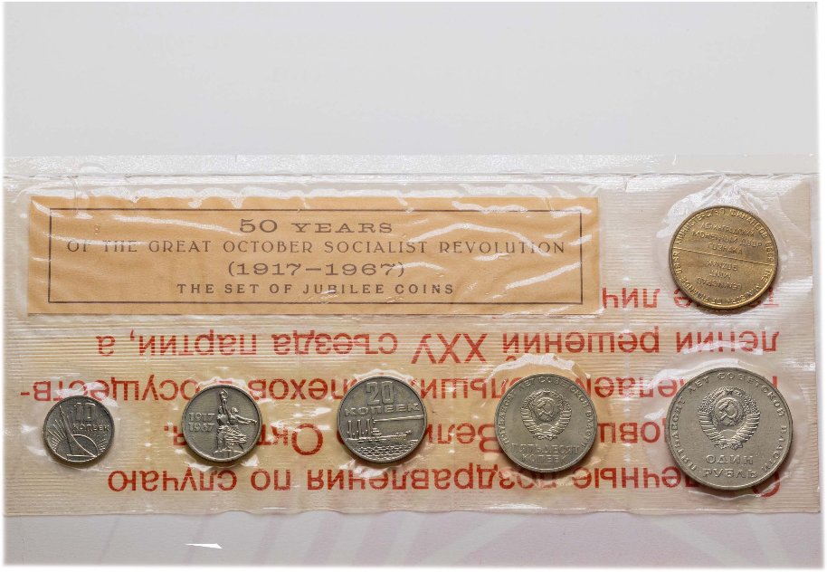Набор госбанка СССР 1967 "50 лет Октябрьской Революции" (5 монет с жетоном)