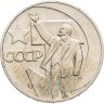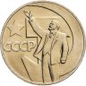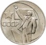 Реверс рублёвой монеты оформлен рельефной композицией, смысловым центром которой является фигура В. Ленина. Ракурс фигуры вождя напоминает о его выступлениях на демонстрациях и митингах. Ленин простирает руку, смотрит в светлое будущее, показан в движении и динамике. Фоном для фигуры служит изображение серпа и молота. В левой части композиции размещена пятиконечная звезда, дополненная аббревиатурой «СССР».