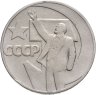 В основе оформления аверса монеты – герб СССР и 2 строчки номинала под ним, а также круговая надпись возле канта «ПЯТЬДЕСЯТ ЛЕТ СОВЕТСКОЙ ВЛАСТИ". В гурт монеты вдавлены 2 надписи – «СЛАВА ВЕЛИКОМУ ОКТЯБРЮ» и «1917–1967», между которыми 2 пятиконечные звезды.