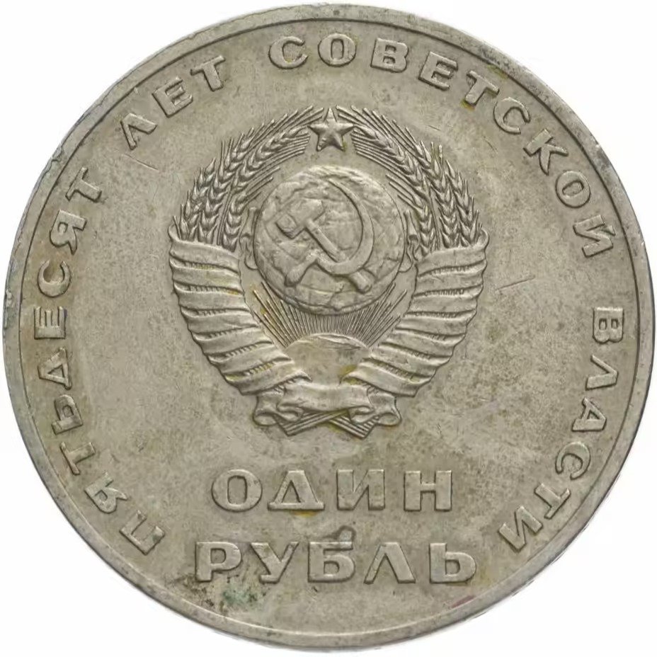 В целом же, юбилейная серия «Пятьдесят лет Советской власти» – уникальный пример чеканки всего ряда монет от мелкого до крупного номинала. Этот опыт не повторяли в связи с трудоёмкостью размещения сложных рисунков на монетах небольших диаметров. Этот юбилейный рубль отчеканен в двух качествах чеканки, штемпельных разновидностей не существует. Есть новодел: в 1988 году рубль ещё раз выпустили тиражом 55000 шт., но уже в улучшенном качестве Пруф.