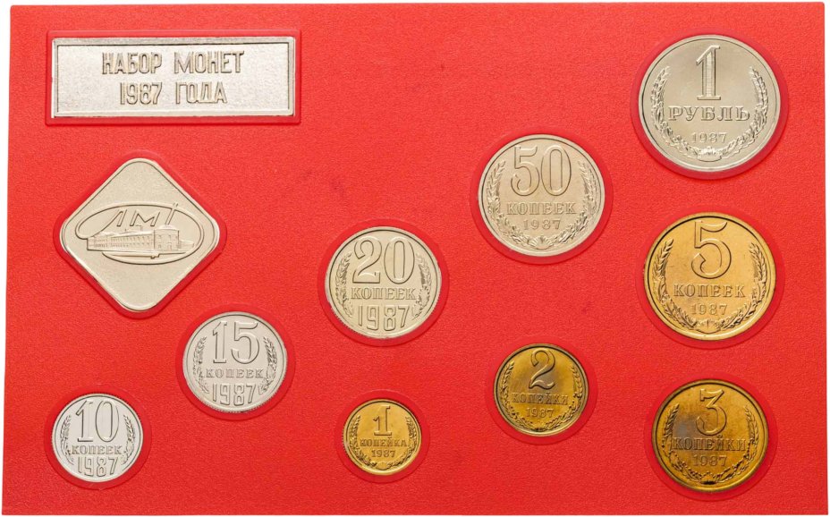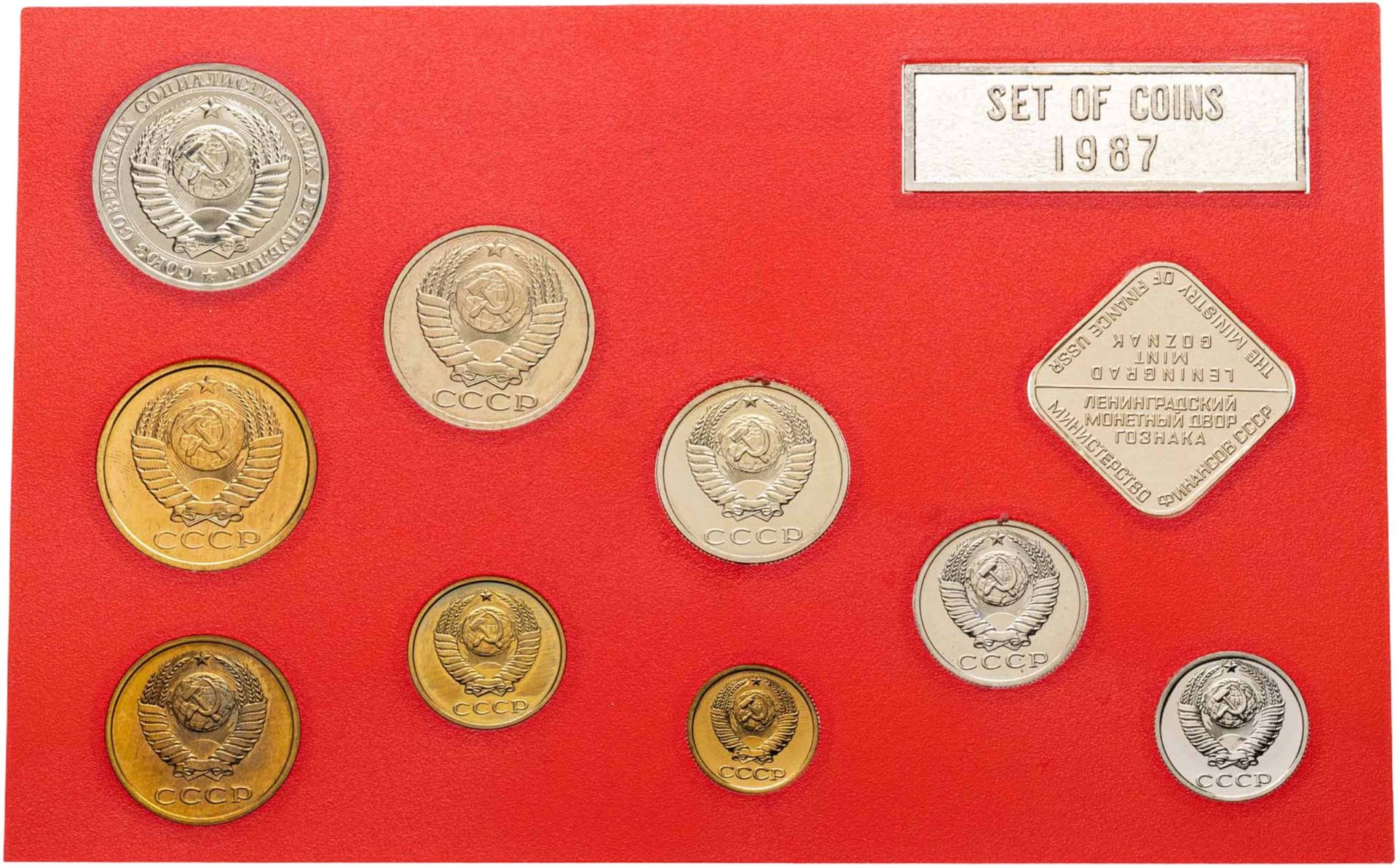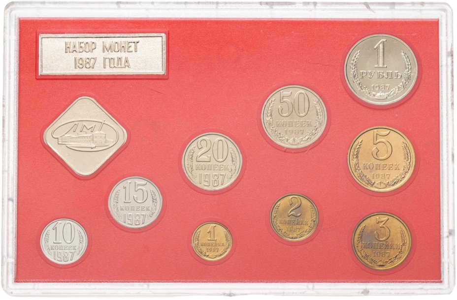 Годовой набор Госбанка СССР 1987 ЛМД (9 монет + жетон в жесткой упаковке)