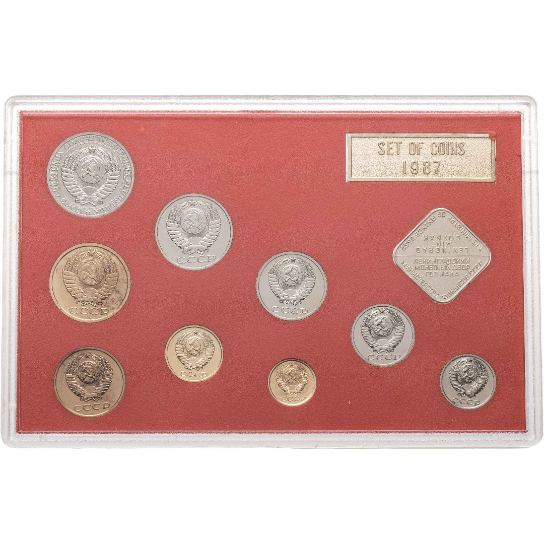 Годовой набор монет СССР 1987 года ЛМД жёсткий ( 9 монет + жетон )