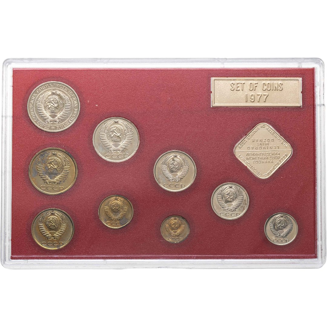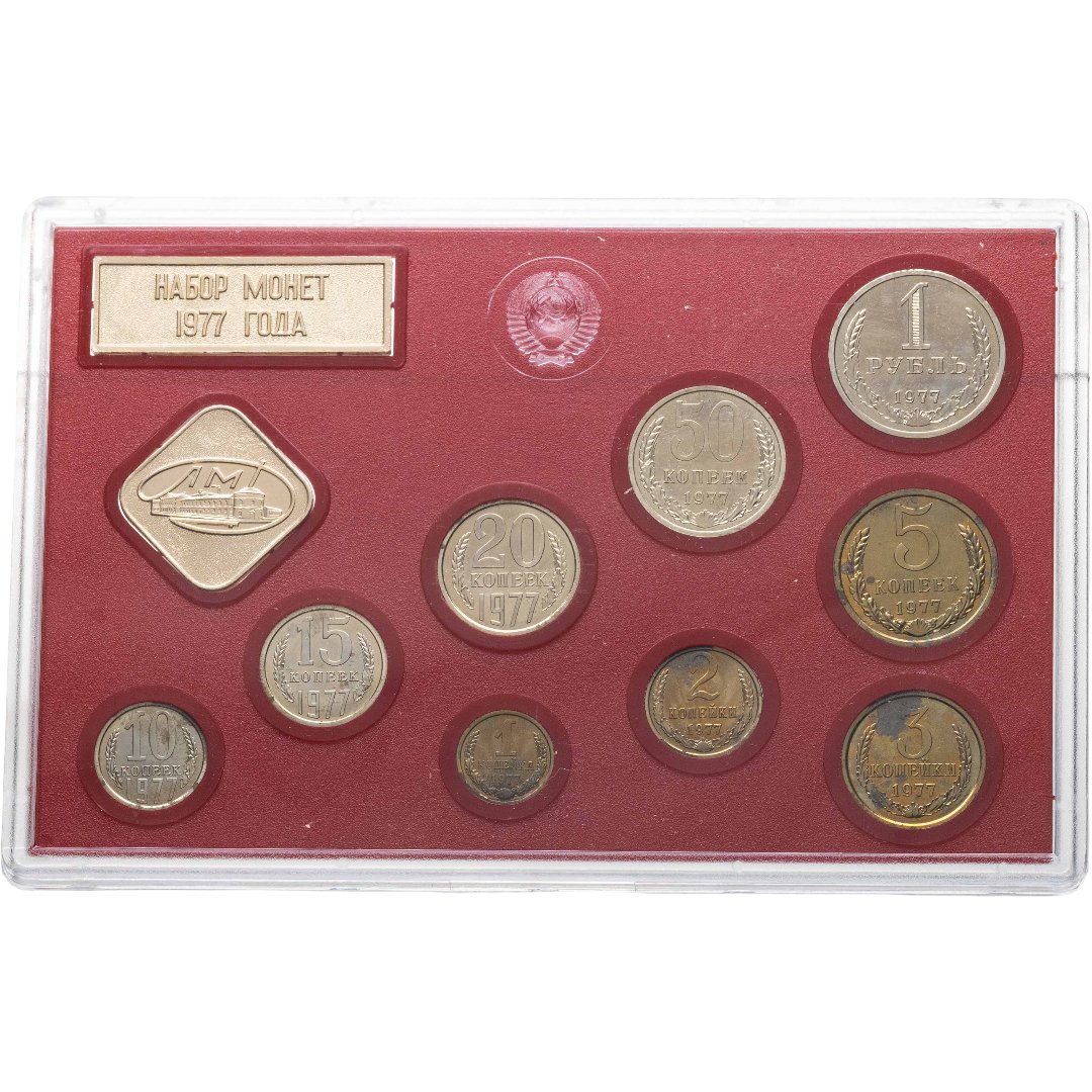 Годовой набор монет СССР 1977 года ЛМД жёсткий ( 9 монет + жетон )