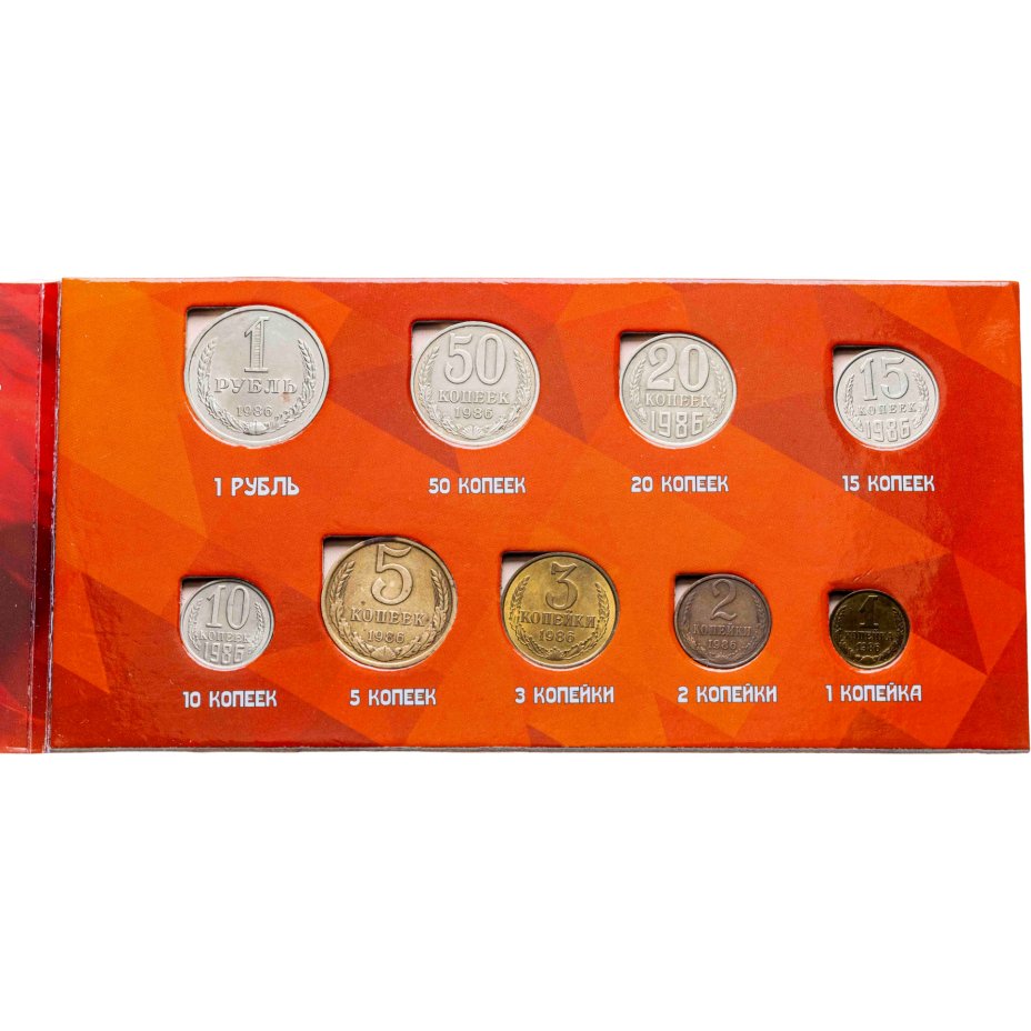 Годовой набор монет СССР 1986 года, от копейки до рубля