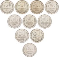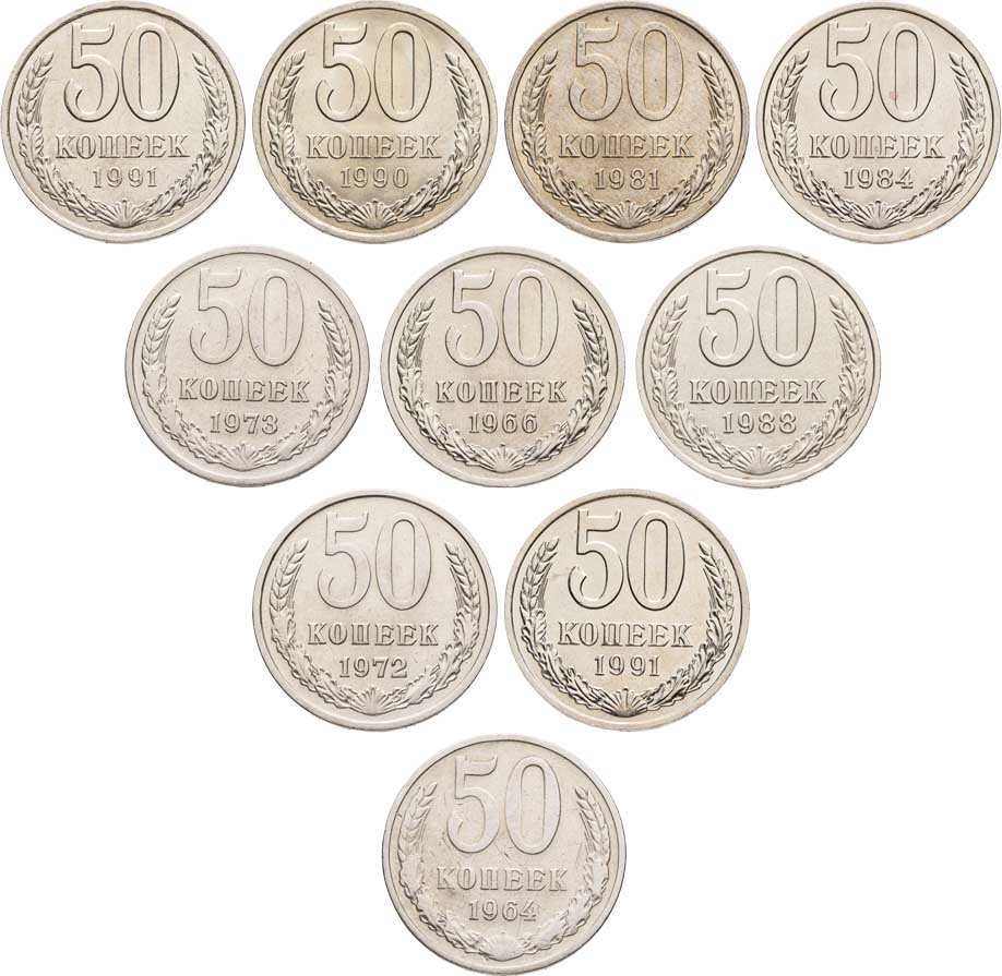 Набор 50 копеек СССР 1964 - 1991 ( Л , М ) 10 штук без повторов