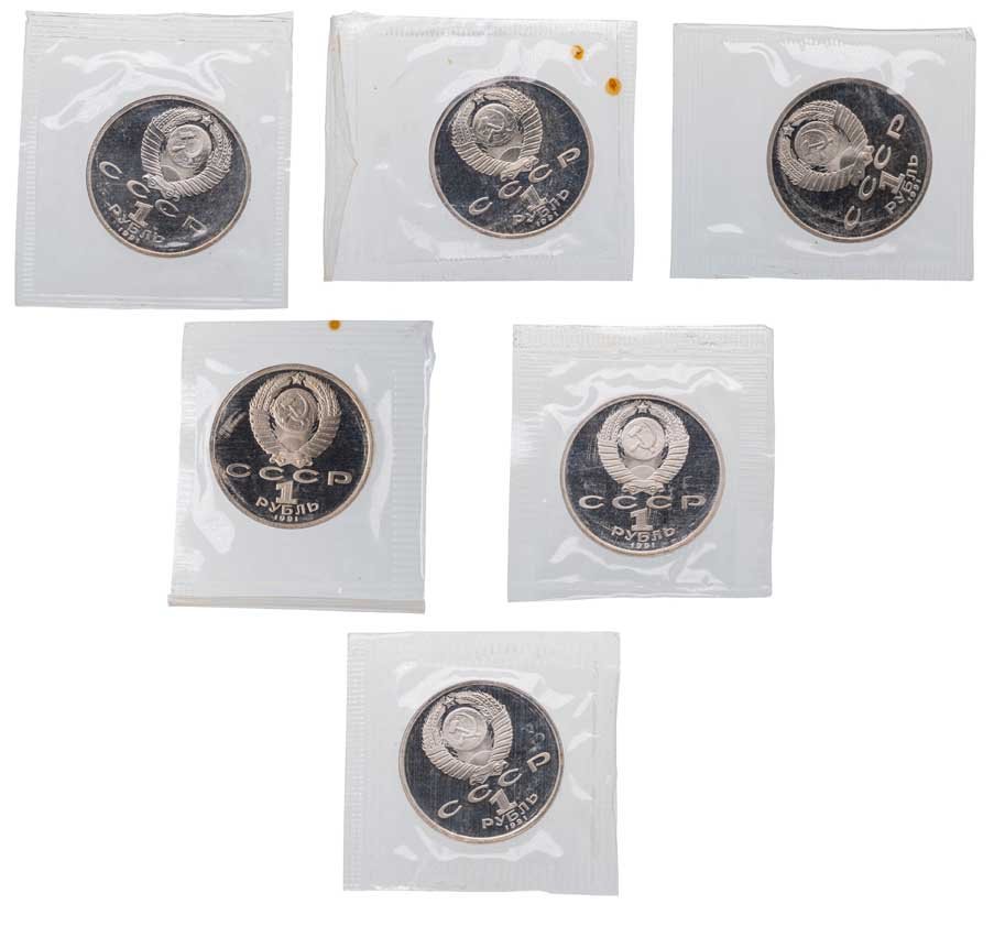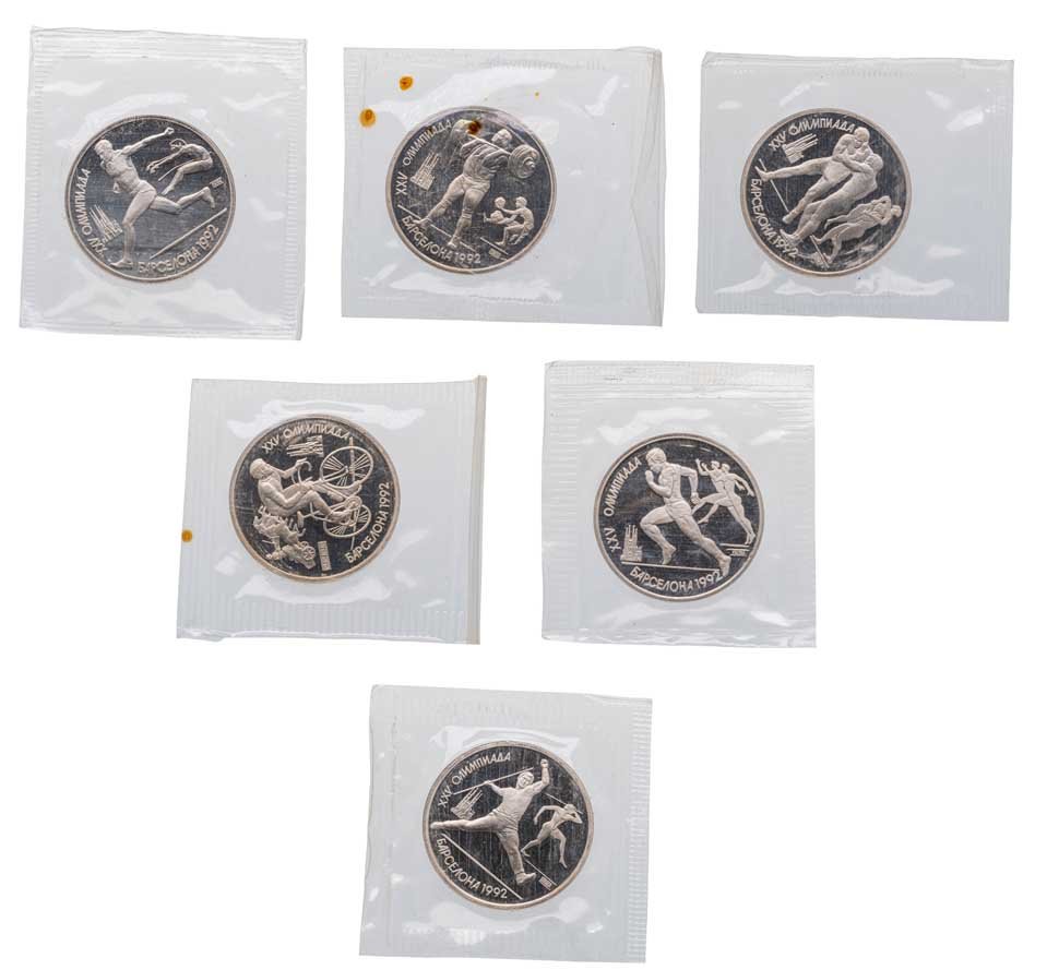 Набор из 6 монет 1 рубль 1991 Proof XXV Олимпийские игры 1992 года , Барселона