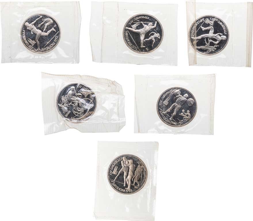 Набор из 6 монет 1 рубль 1991 Proof XXV Олимпийские игры 1992 года , Барселона