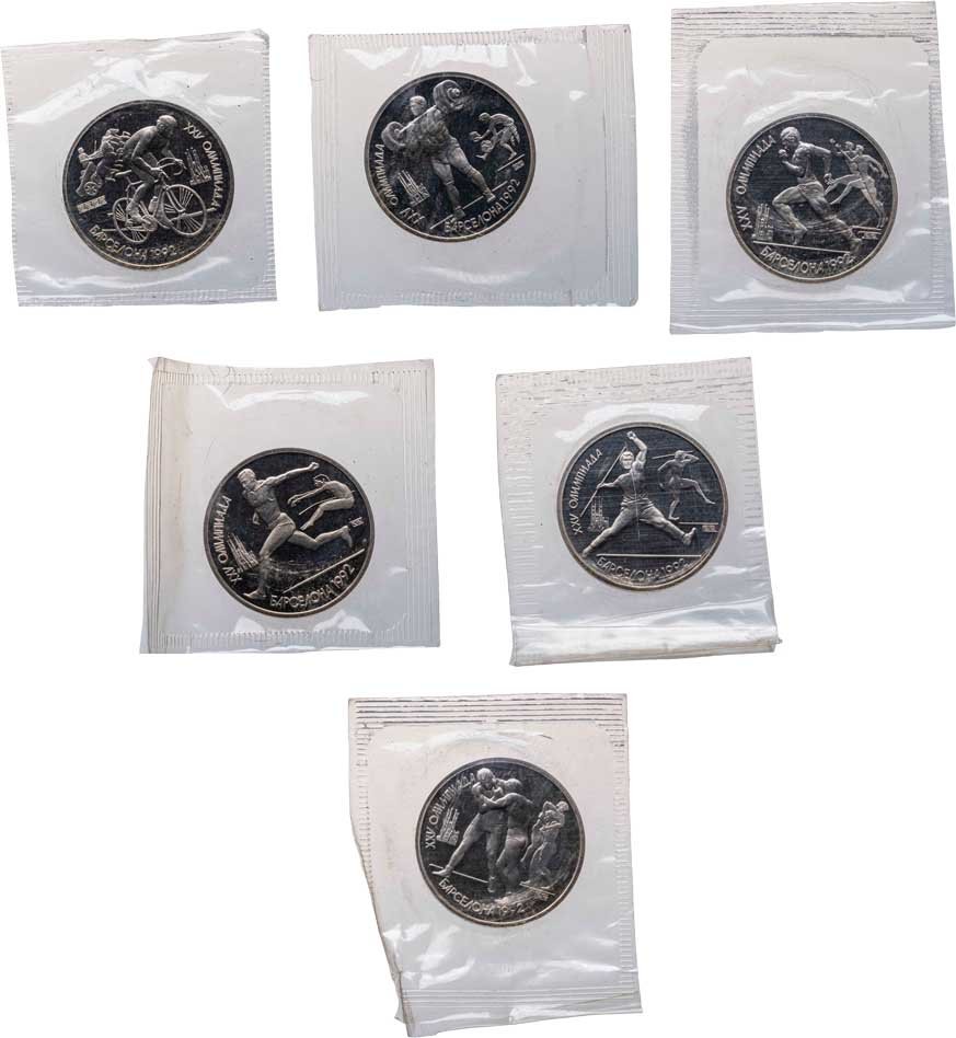 Набор из 6 монет 1 рубль 1991 Proof XXV Олимпийские игры 1992 года , Барселона