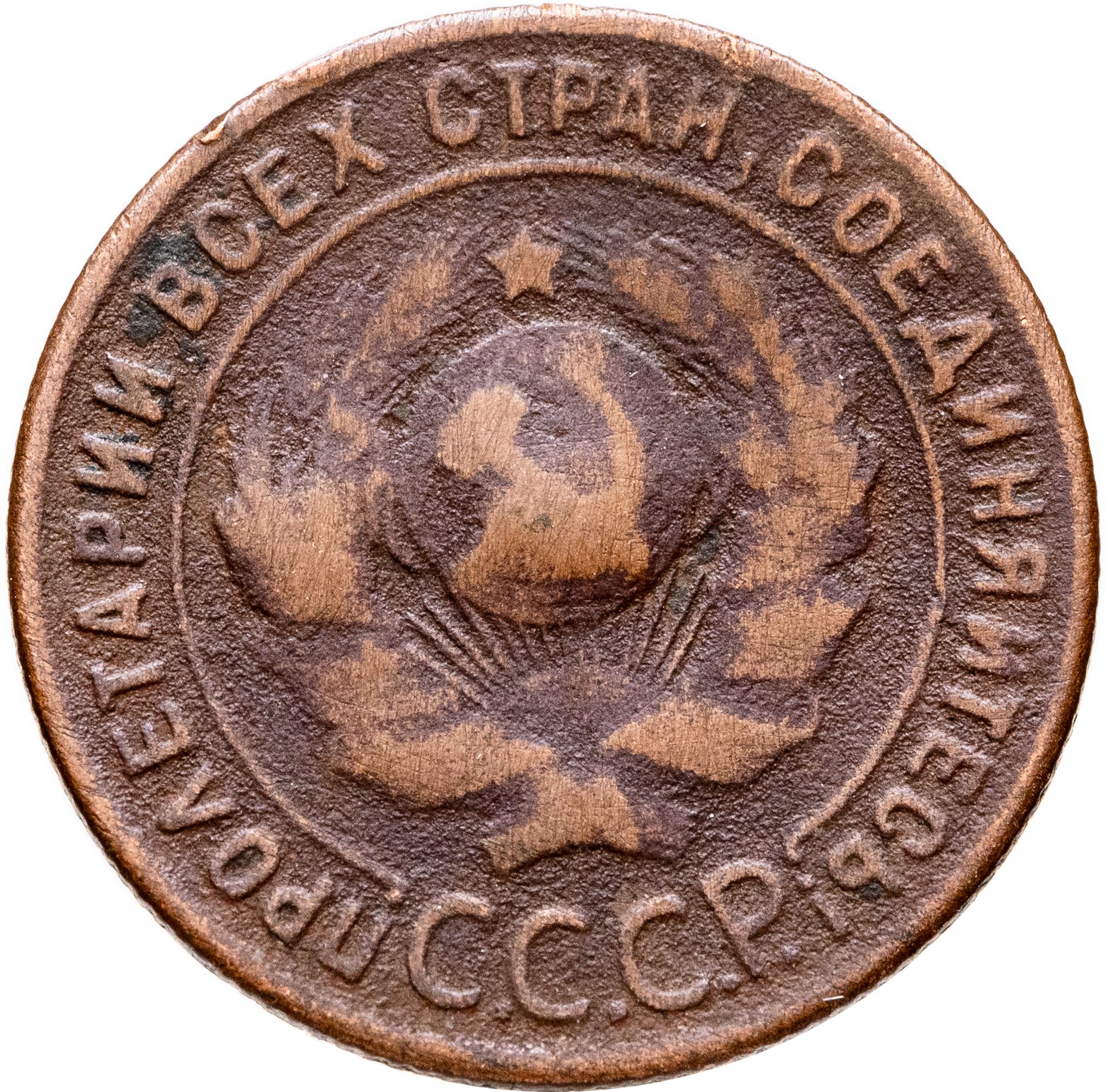 Штемпель 1.2. острие серпа ниже полюса, диск солнца без венчика, возле острого конца молота нет меридиана, герб СССР - 7 витков ленты.