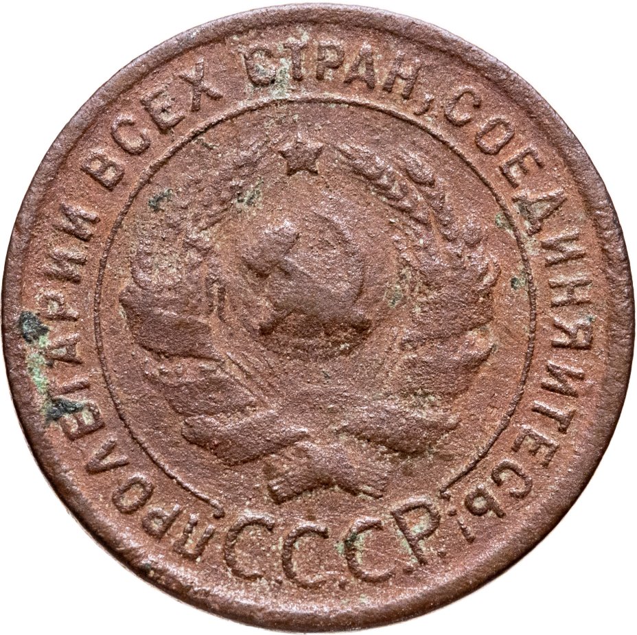 Штемпель 1.3. диск солнца со слабым венчиком, к острому концу молота подходит меридиан, герб СССР - 7 витков ленты.