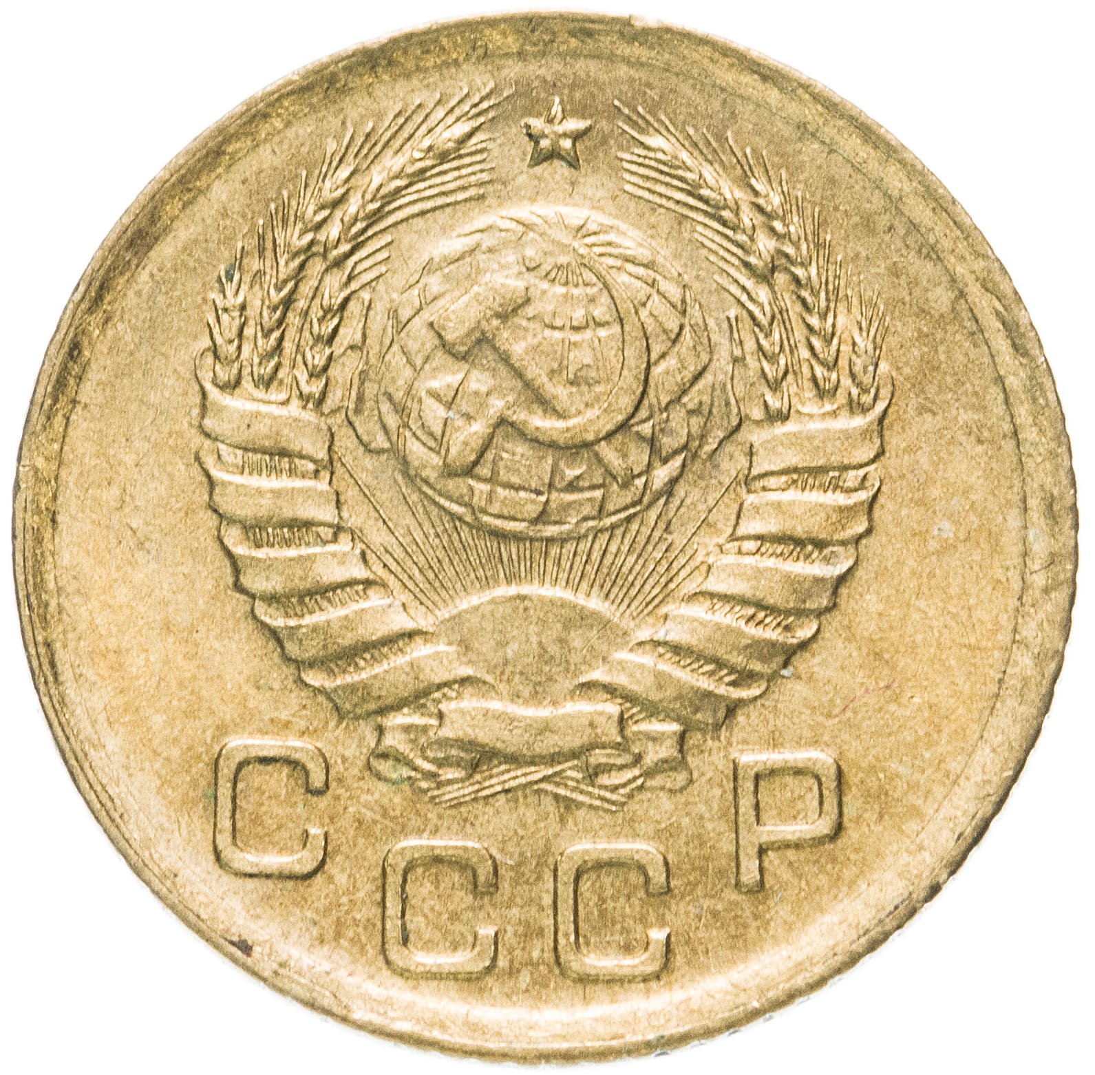 Дизайн аверса: В центре герб с 11 витками ленты, которая обвивает колосья пшеницы, с каждой стороны по три колоса. В центре – восходящее солнце и над ним земной шар с перекрещенными серпом и молотом. Над ним, между встречающимися колосьями пятиконечная звезда. Под гербом надпись «СССР», Первая буква «С» и буква «Р» приподняты относительно двух средних букв «СС».