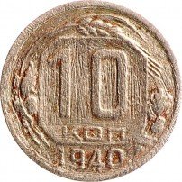 10 копеек 1940 (пострадавшая)