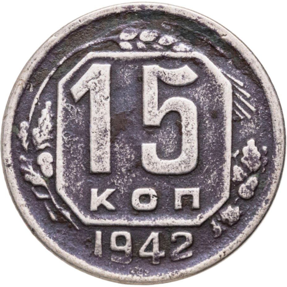 Цена монет 10 копеек 1942 и 15 копеек 1942 года в зависимости от степени сохранности