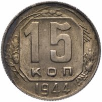 15 копеек 1944 остатки штемпельного блеска