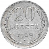 Монета выполнена из серебра 500-й пробы. Ярко выраженных разновидностей не имеет. Кроме одной: небольшой тираж был отчеканен штемпелем аверса для 3-копеечного номинала. Эта традиция сохранялась до самого конца существования монет СССР. Штемпели очень близки по размеру, разница всего в 0,2 мм. Отличить «3-копеечный» штемпель можно по буквам «С.С.С.Р.»: у оригинального штемпеля 20 копеек они более вытянутые, у 3 копеек – более округлые.