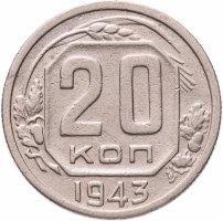Монета 20 копеек 1943 года. Цена разновидностей и стоимость новодела