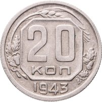 Монета 20 копеек 1943 года. Цена разновидностей и стоимость новодела