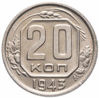 Монета 20 копеек 1943 года. Цена разновидностей и стоимость новодела