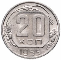 На монете в 20 копеек 1955 года находится рекордное количество витков ленты: 16. Через несколько лет их станет 15, и такое число сохранится вплоть до распада СССР в 1991 г. и замены денежной системы на российскую.