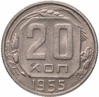 На монете в 20 копеек 1955 года находится рекордное количество витков ленты: 16. Через несколько лет их станет 15, и такое число сохранится вплоть до распада СССР в 1991 г. и замены денежной системы на российскую.
