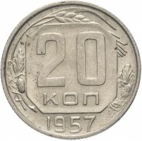 20 копеек 1957 остатки штемпельного блеска