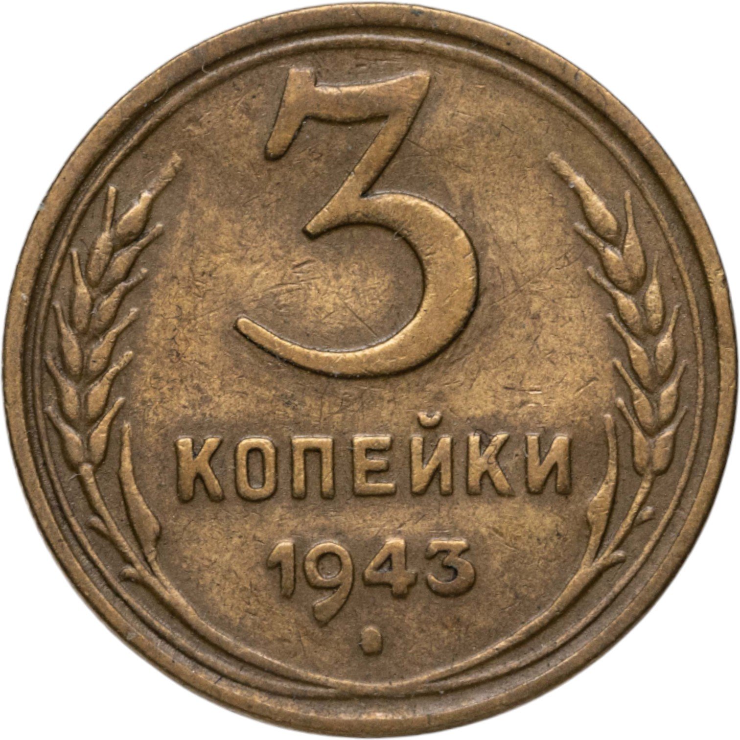3 копейки 1943 остатки штемпельного блеска