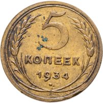 5 копеек 1934 года: цена обычного и специального чекана