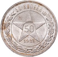 Серебряный полтинник РСФСР (1921-1922 гг.) и СССР (1924-1927 гг.)