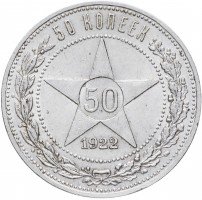 50 копеек (полтинник) 1921 и 1922 года с буквами АГ и ПЛ на гурте