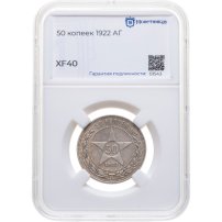 Купить 50 копеек 1922 АГ в слабе Монетник.ру XF40