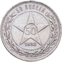 50 копеек (полтинник) 1921 и 1922 года с буквами АГ и ПЛ на гурте