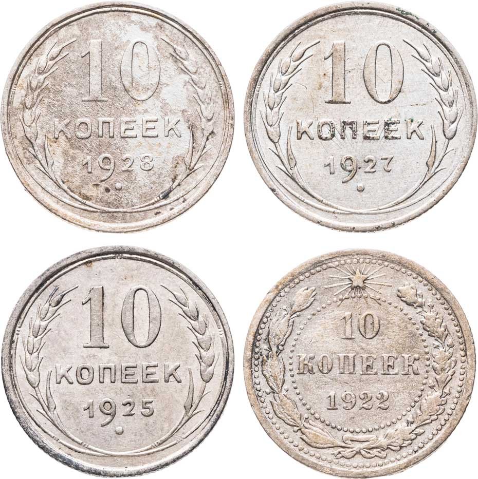 Набор из 4 монет 10 копеек 1922-1928