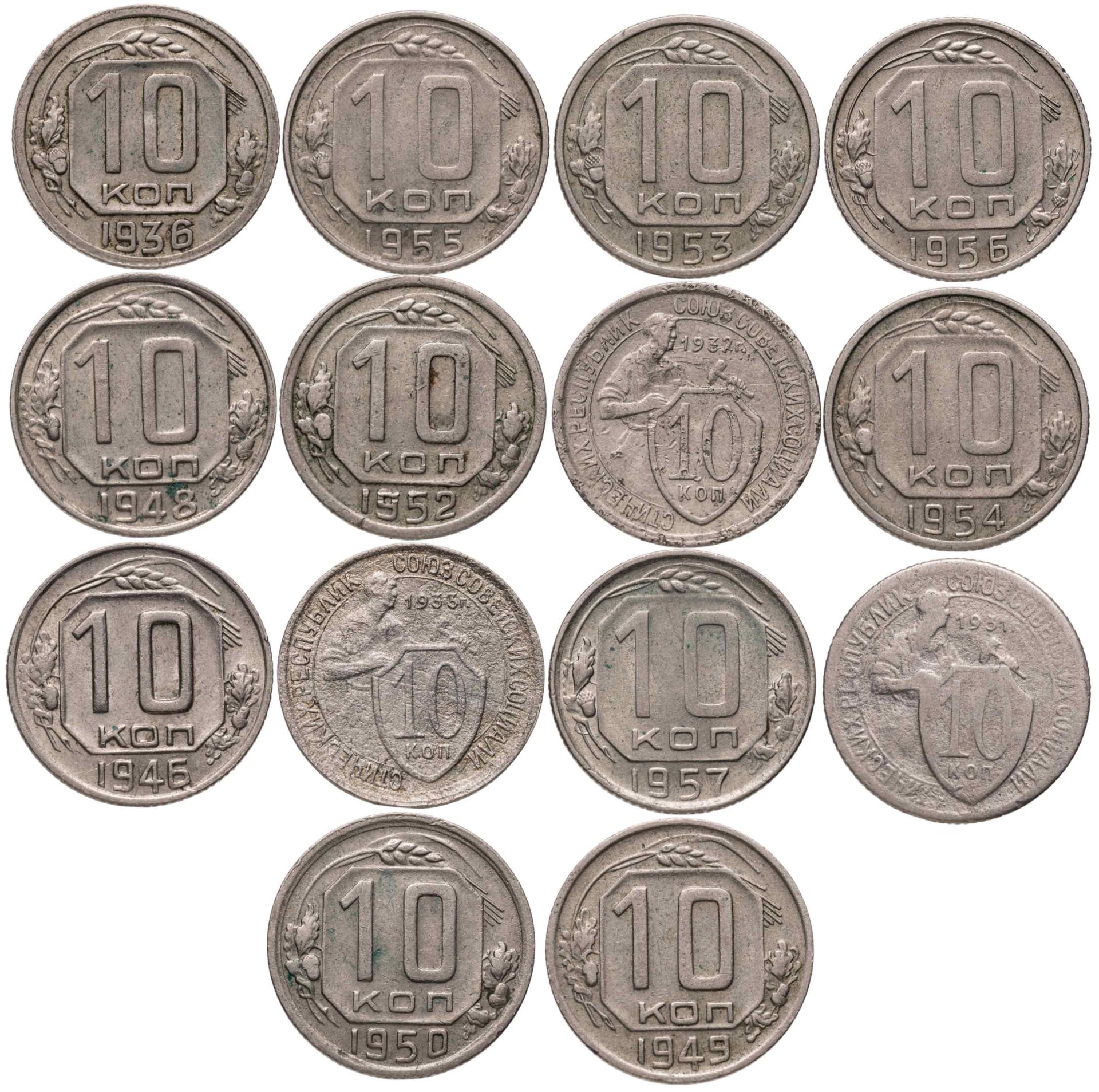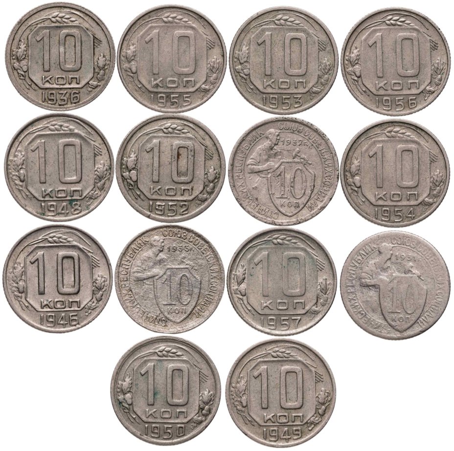 Набор монет 10 копеек СССР ( 14 штук ) 1931 - 1957
