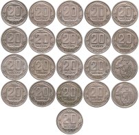 Набор монет 20 копеек СССР ( 21 штука ) 1931 - 1957 , без повторов