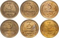 Набор монет 3 копейки СССР ( 6 штук ) 1930 - 1949