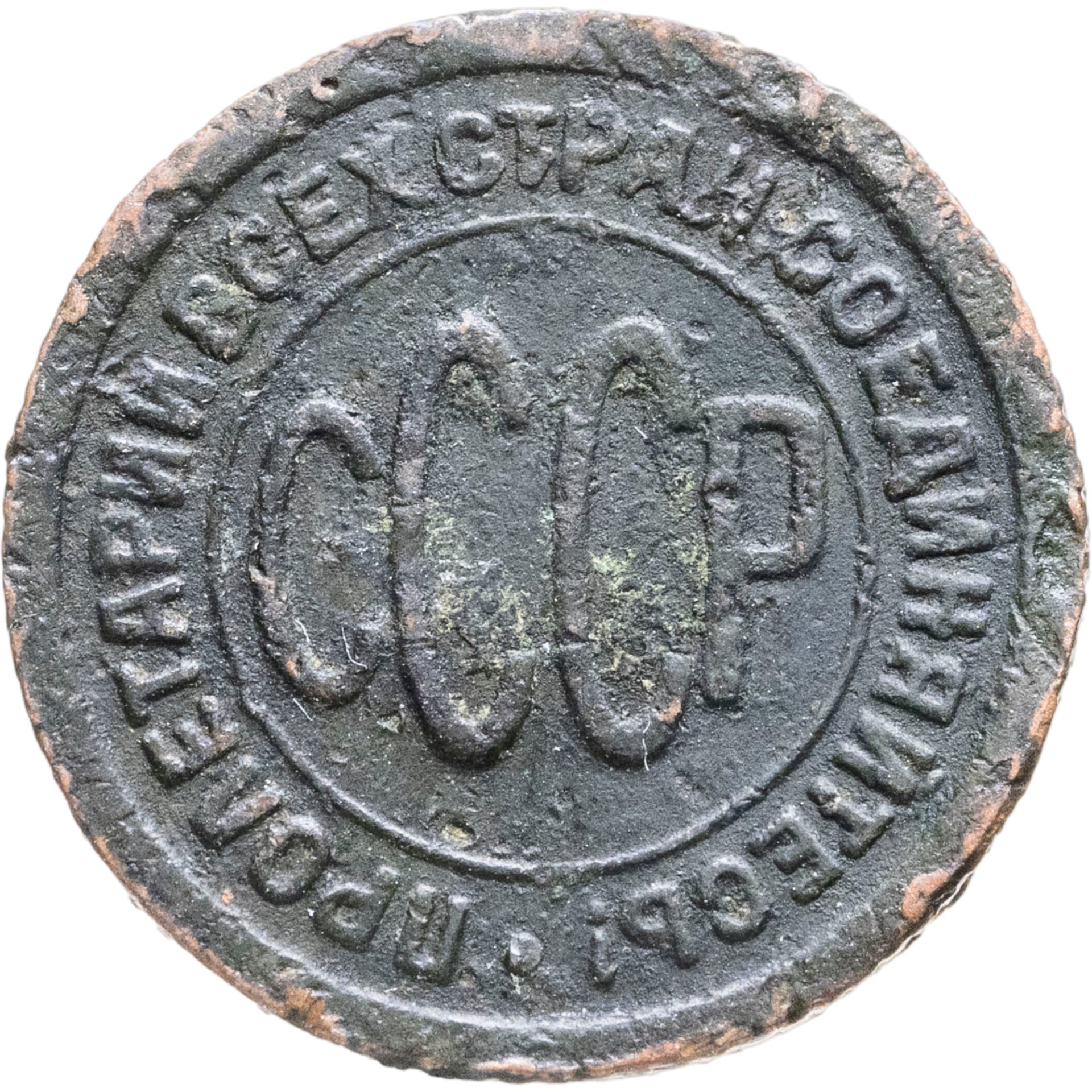 Штемпель Ф-1 - буквы СССР, круговая надпись «пролетарии всех стран соединяйтесь» разделенная точкой.