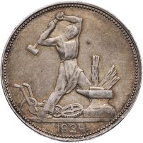50 копеек 1924 года в серебре: разновидности рисунка, буквы на гурте, история появления монеты один полтинник 1924 года